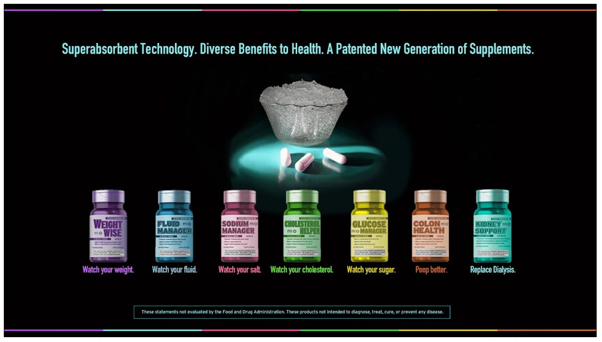 Proprietary Technology Bypasses Kidney Function. Works as a Superabsorbent to Support Fluid Management and  Control.